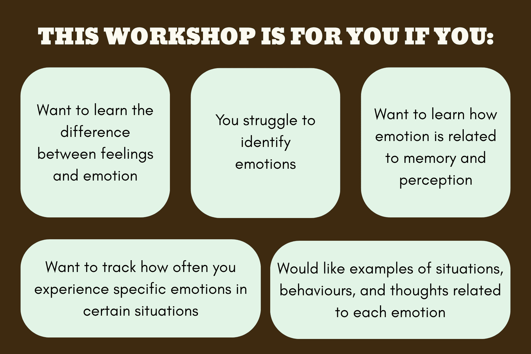 This pre-recorded workshop will make you feel more confident using language around and recognizing emotions, while giving you helpful knowledge about your emotions.