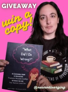 Win a paperback copy of “What Did I Do Wrong?”: An Accessible Guide to Preventing Traumatic Misunderstandings Between You and Your Autistic Loved One through 7/31/24. Enter Now.